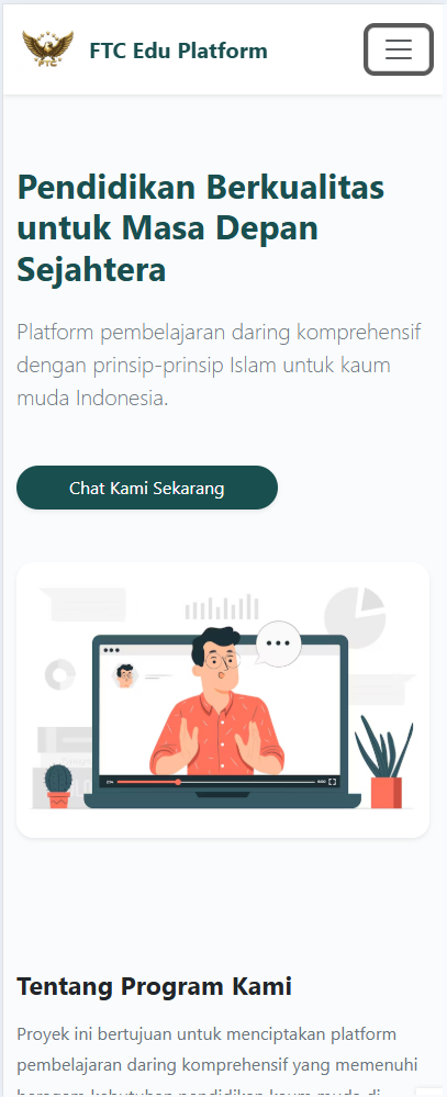 EduPlatform adalah solusi aplikasi web modern yang dirancang khusus untuk instansi pendidikan, lembaga kursus, maupun layanan profesional lainnya. Menghadirkan keseimbangan sempurna antara desain muka (front-end) yang elegan dan sistem panel kontrol (back-end) yang tangguh. Anda tidak perlu menjadi ahli IT untuk memiliki dan mengelola website profesional.